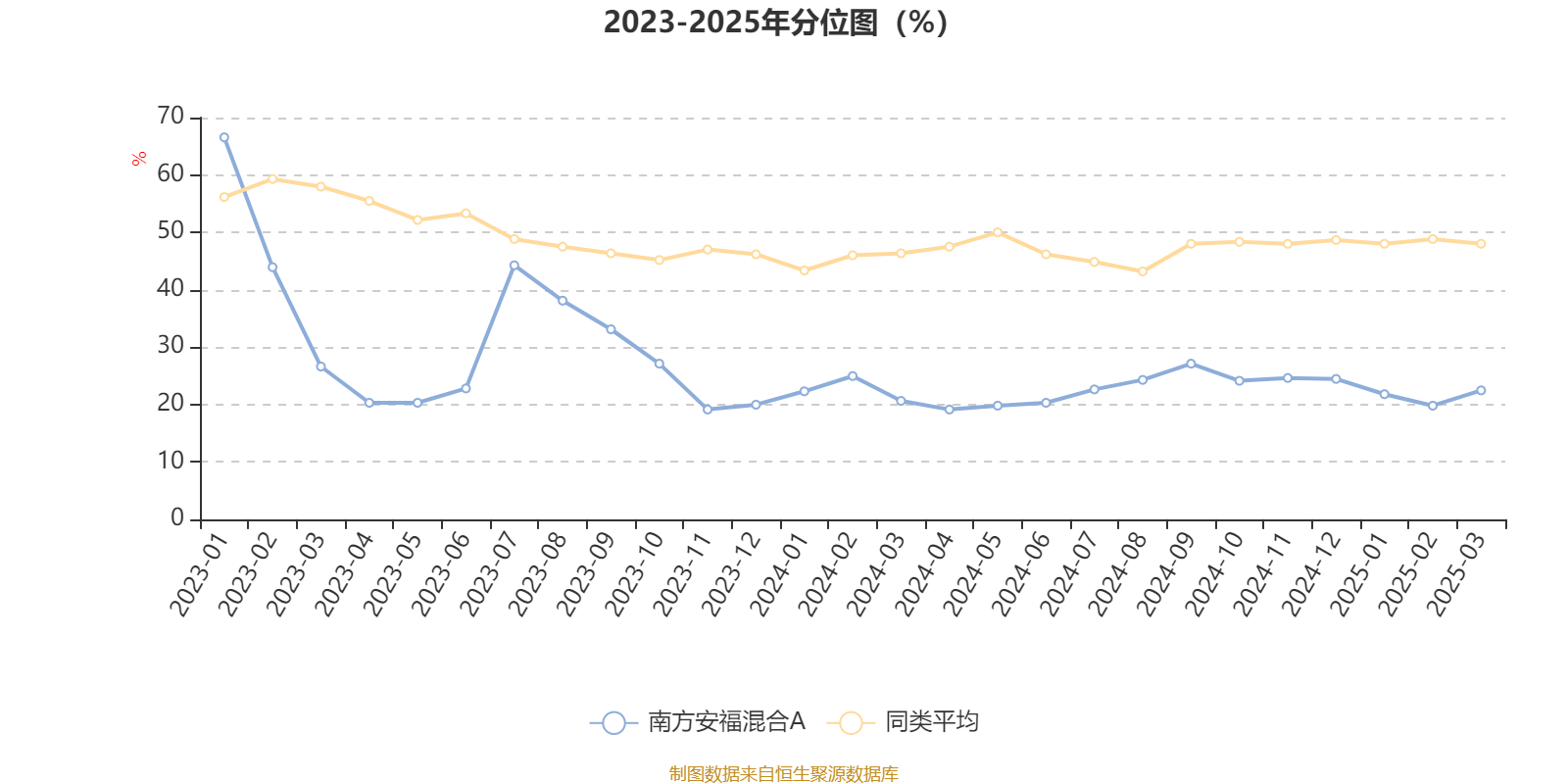 通过所选区间该基金净值增长率分位图,可以观察该基金与同类基金业绩比较情况。图为坐标原点到区间内某时点的净值增长率在同类基金中的分位数。