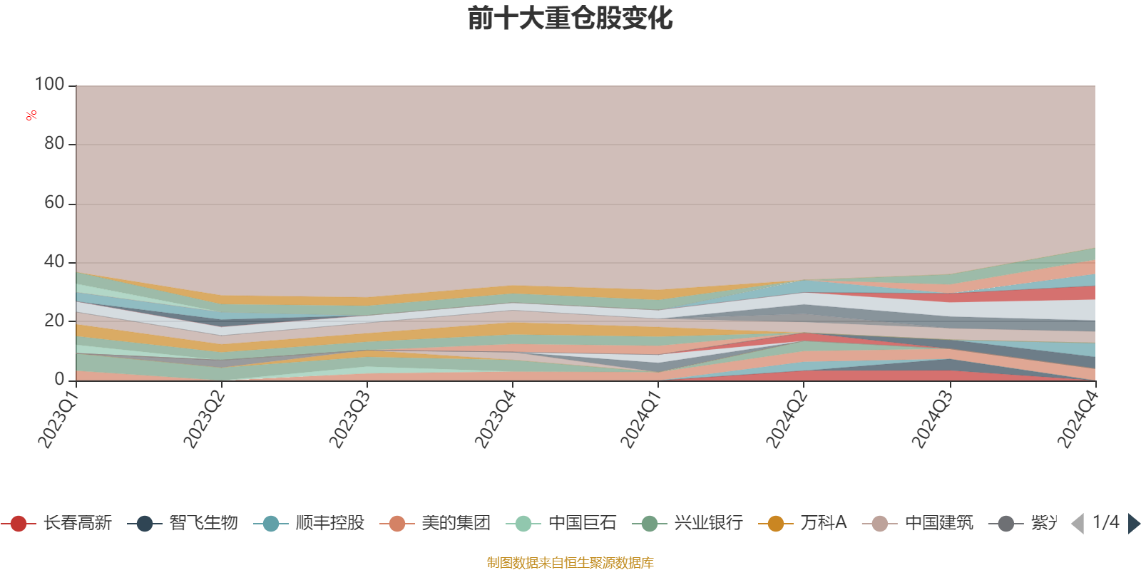 截至2024年末,基金十大重仓股分别是贵州茅台、双汇发展、陕西煤业、中信特钢、伊利股份、美的集团、华域汽车、海油工程、平安银行、洋河股份。