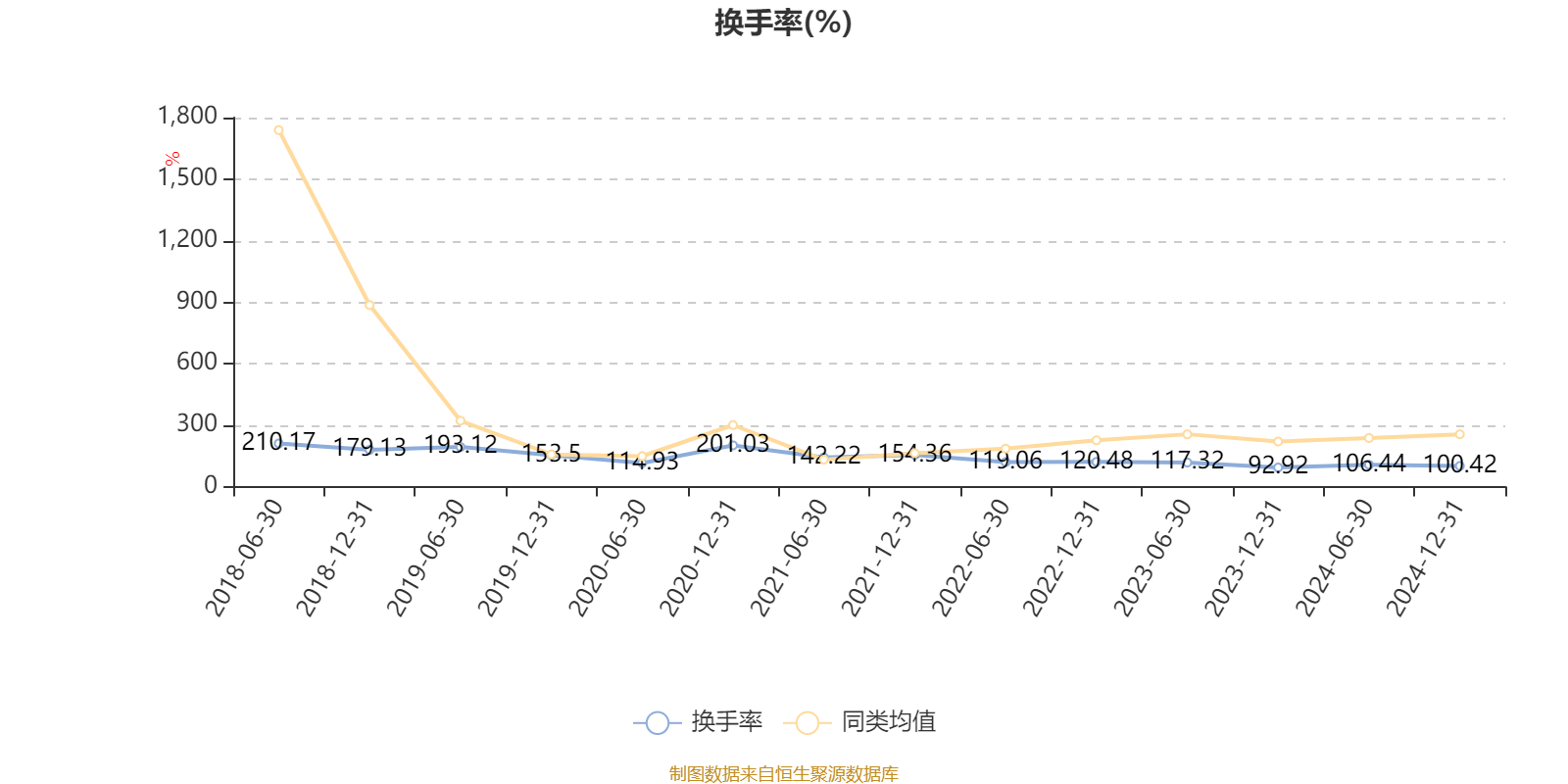 截至2024年12月31日,基金最近一年换手率约202.03%,持续3年低于同类均值。